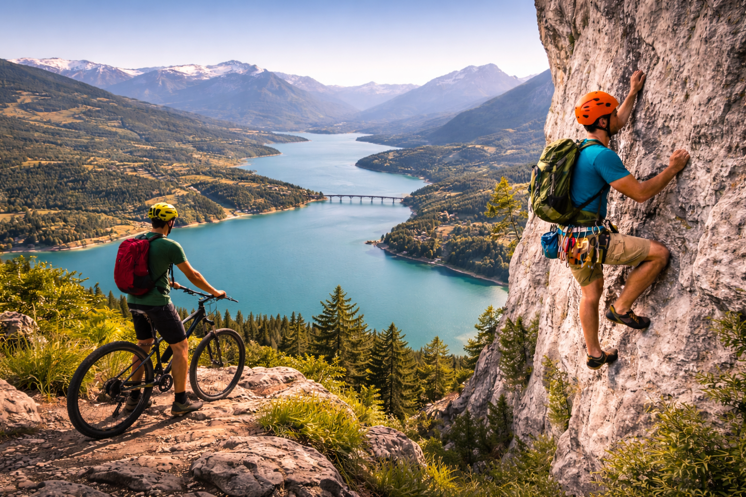 Escalade, via ferrata, canyoning, VTT, vélo de route, Kayak, windsurf... un large choix d'activités pour cheminer du lac aux cîmes, et s'émerveiller dans le plus beau terrain de jeu du monde : les Hautes-Alpes !